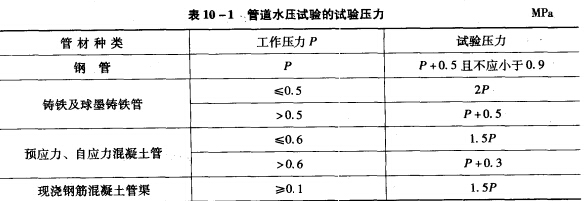 水泥管管道的試驗壓力,一級施工圖紙均注明要求。如果沒有注明,可按我10-1采用。
